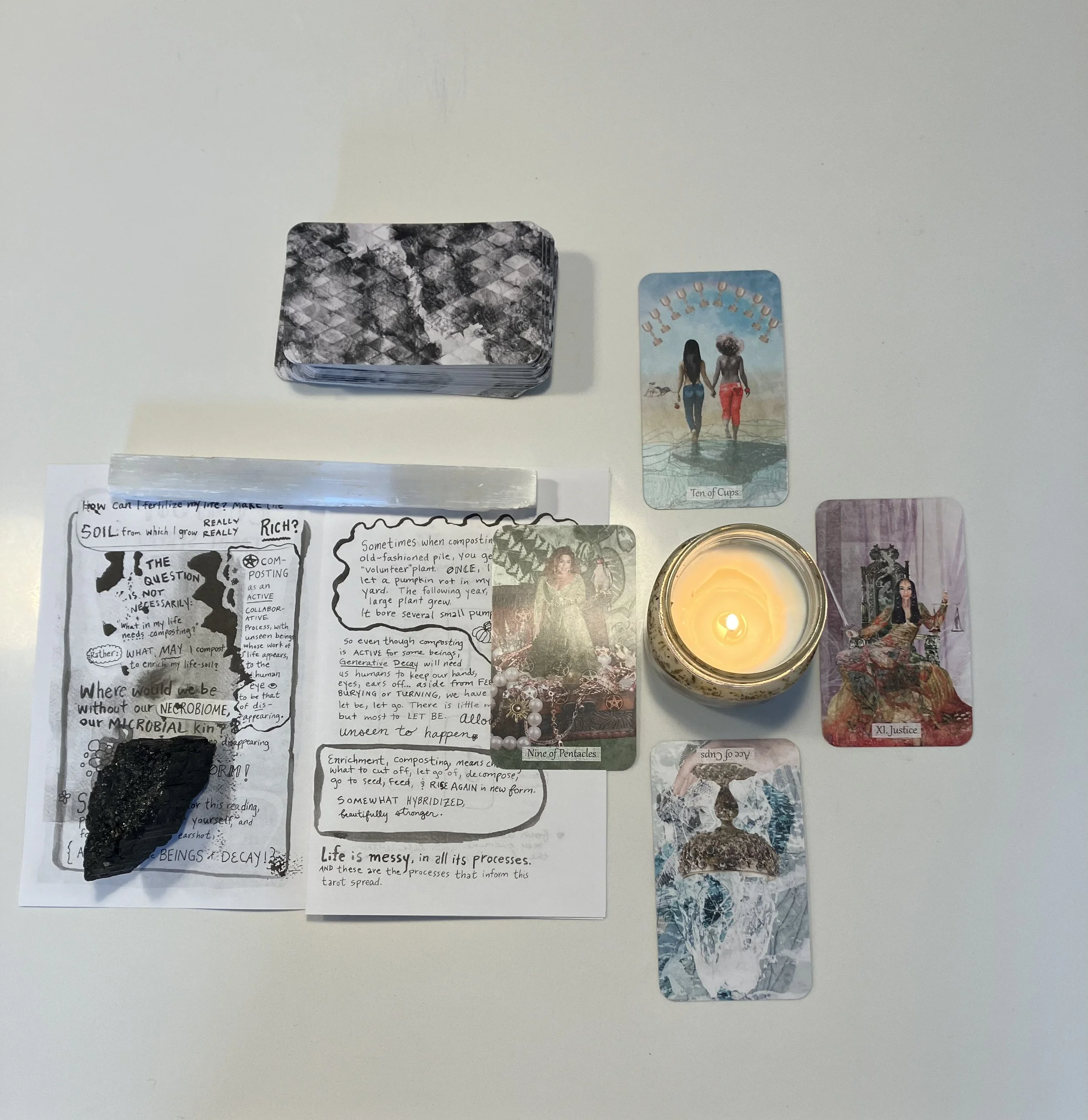 I have been collaborating with tarot for ten years. In that time I have come to know this oracular system as a way-finding tool. The cards work well to trigger subconscious human knowing toward the surface of the mind.